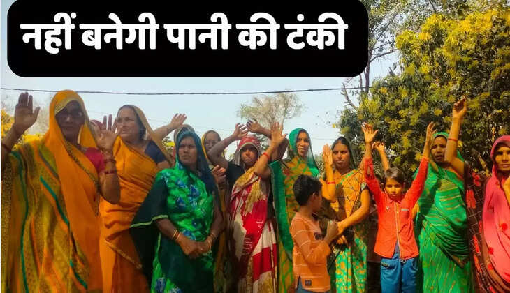 पंचायत भवन परिसर में जल निगम की टंकी बनवाने का ग्रामीणों ने किया विरोध