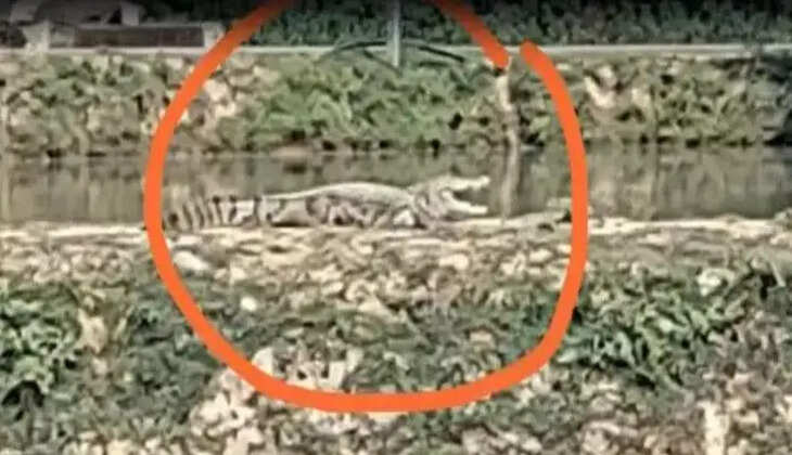 फिरोजपुर गांव के प्राइमरी स्कूल के पास पोखरे में दिखे 2 मगरमच्छ