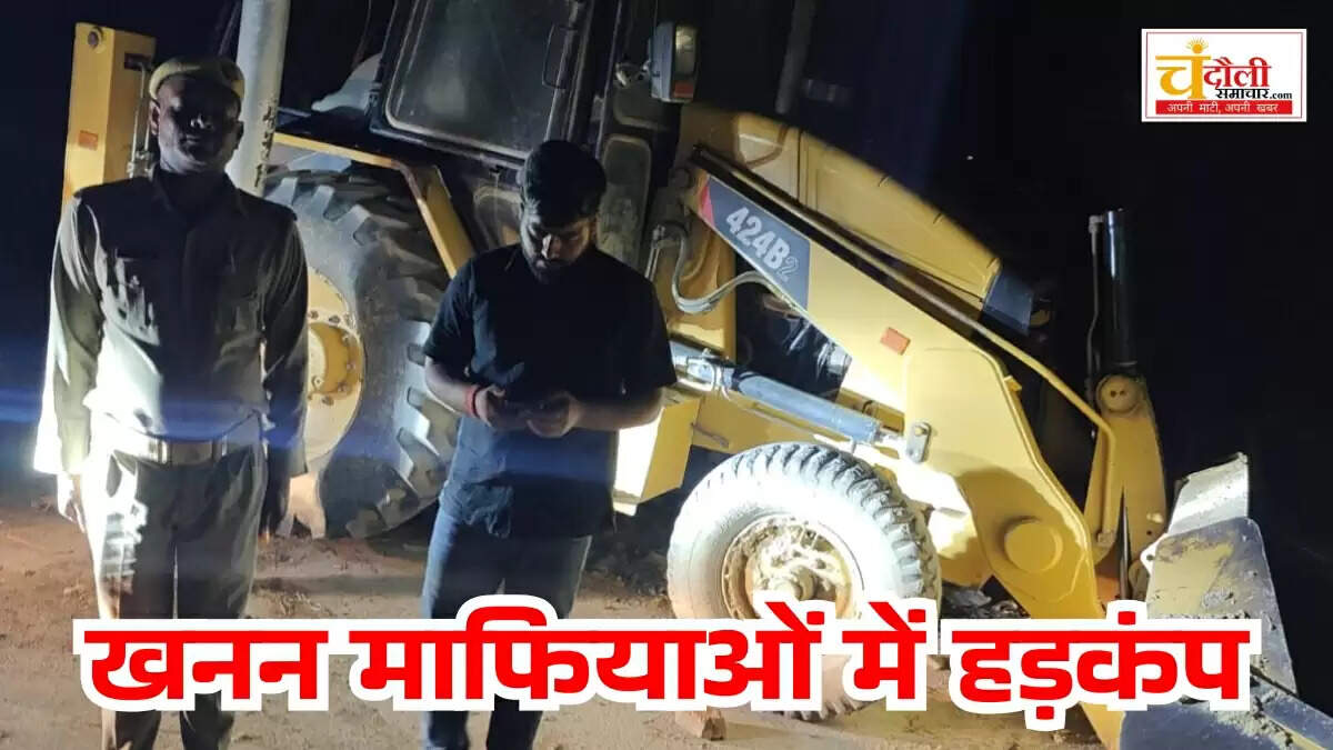 चंदौली जनपद के जिला खनन अधिकारी गुलशन कुमार द्वारा लगातार अवैध रूप से खनन करने वाले खनन माफियाओं पर अंकुश लगाने की कार्रवाई करने का सिलसिला जारी है। बीती रात जहां सैयदराजा थाना के भतीजा गांव से एक जेसीबी को अवैध खनन करते हुए सीज किया, वहीं सकलडीहा थाना के डेढ गावाँ गांव से भी एक जेसीबी को अवैध खनन करते समय पकड़ कर सीज कर दिया। छापेमारी को देखते हुए ट्रैक्टर चालक अपनी गाड़ी को लेकर फरार हो गए वही जेसीबी छोड़कर चालक भी मौके से भाग गए ।