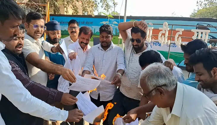 सरकारी नोटिस की होली जलाकर किया विरोध