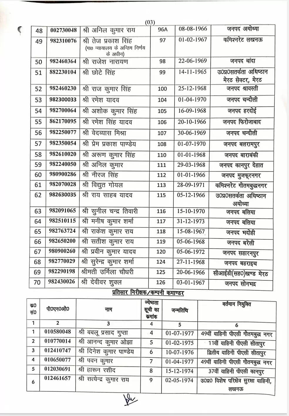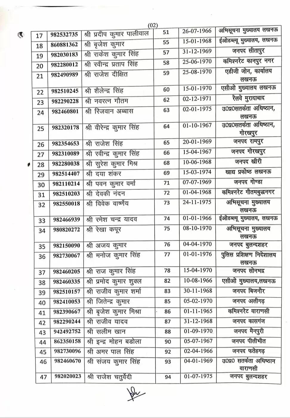 इस सूची में कई अनुभवी अधिकारियों के नाम शामिल हैं, जो लंबे समय से अपनी सेवाएं दे रहे हैं। इनमें प्रमुख रूप से शामिल हैं: