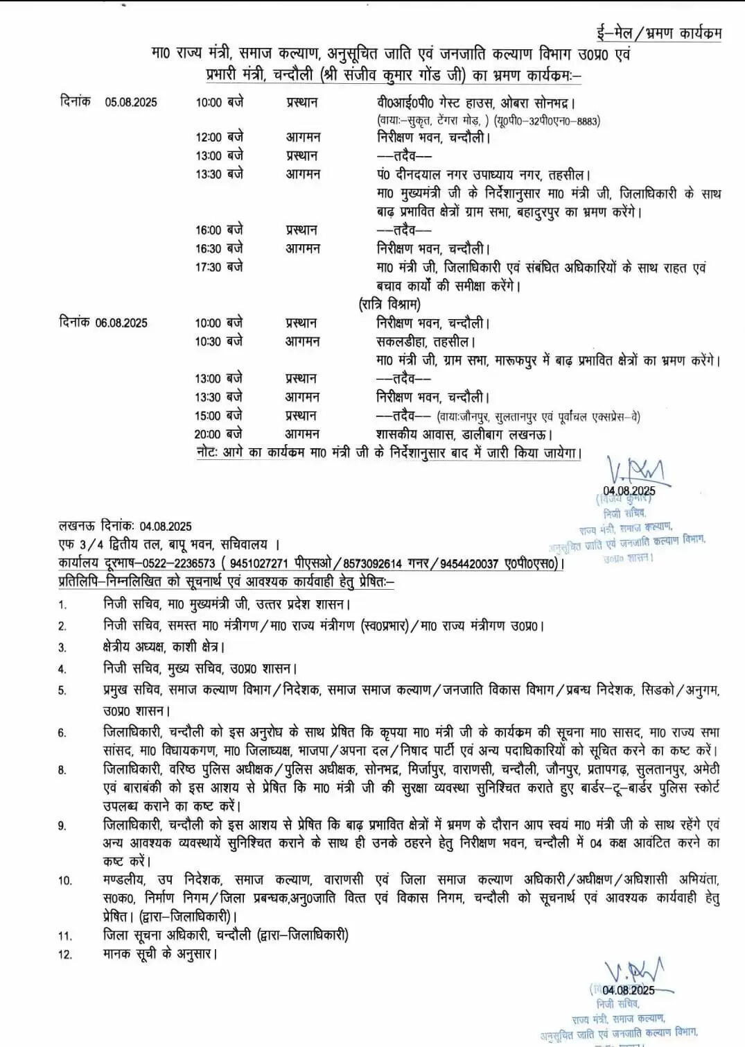 प्रभारी मंत्री संजीव कुमार गोंड़ आज बाढ़ प्रभावित इलाकों का दौरा