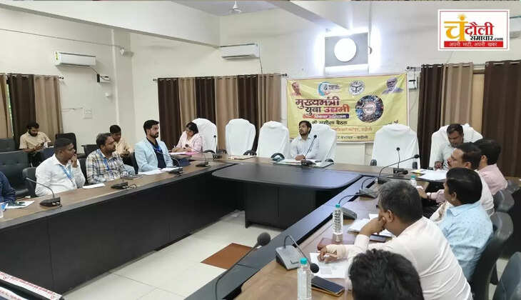 चंदौली जिले मुख्यमंत्री युवा उद्यमी विकास अभियान को लेकर जनपद चंदौली में चल रही प्रगति की समीक्षा हेतु जिलाधिकारी चंद्र मोहन गर्ग की अध्यक्षता में कलेक्ट्रेट सभागार में महत्वपूर्ण बैठक आयोजित की गई। बैठक में योजना की अब तक की प्रगति, लंबित आवेदन और बैंकिंग स्तर पर आ रही समस्याओं पर गहन चर्चा की गई।
