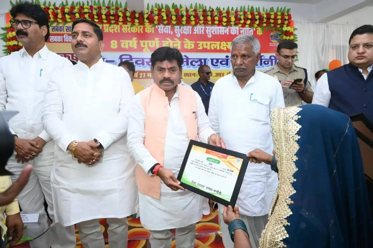 चंदौली जिले में उत्तर प्रदेश सरकार की सेवा, सुरक्षा व सुशासन की नीति के आठ वर्ष पूर्ण होने के अवसर पर डीपीआरसी, नियमताबाद में भव्य समारोह का आयोजन किया गया। कार्यक्रम का उद्घाटन प्रदेश के समाज कल्याण राज्यमंत्री द्वारा किया गया। इस अवसर पर मुगलसराय विधायक रमेश जायसवाल, चकिया विधायक कैलाश आचार्य, भाजपा जिलाध्यक्ष काशीनाथ सिंह, जिलाधिकारी निखिल टीकाराम फुंडे, पुलिस अधीक्षक आदित्य लांग्हे, मुख्य विकास अधिकारी आर. जगत साईं सहित अन्य जनप्रतिनिधिगण एवं प्रशासनिक अधिकारी उनके साथ रहे।