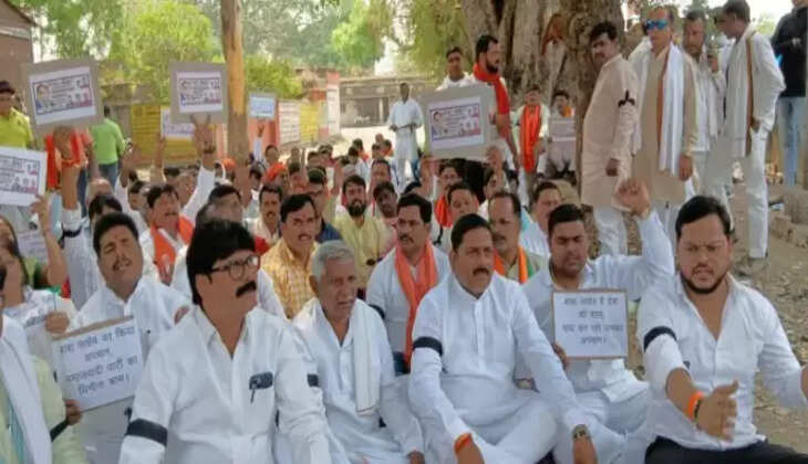 अंबेडकर की तस्वीर से छेड़छाड़ पर भाजपा का धरना