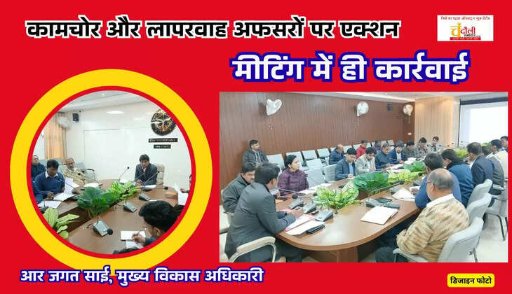 चंदौली मुख्य विकास अधिकारी आर जगत साई ने पंचायती राज विभाग की समीक्षा बैठक में कड़ा रुख अपनाते हुए चार ब्लॉक के एडीओ पंचायत को नोटिस जारी करने का निर्देश दिया है। उन्होंने 10 जनवरी तक जियो टैगिंग और वेतन भुगतान के कार्यों को पूर्ण करने की सख्त समय सीमा तय की है।