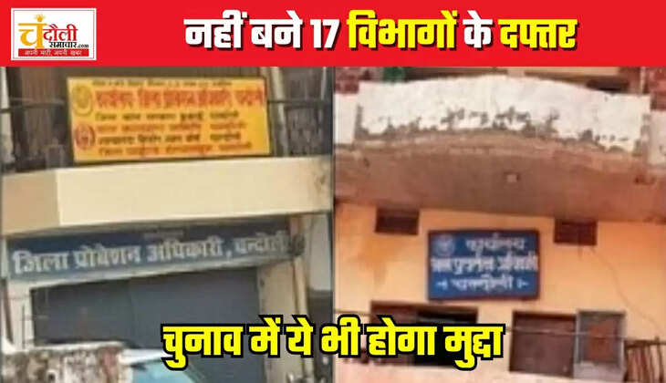 चंदौली जिले को बनाने को लेकर सपा-बसपा में पहले खींचतान चली। फिर दोबारा बहाल होने के बाद भी जिले को वह अटेंशन नहीं मिला जो राजनेताओं व दलों के मन में होना चाहिए था। जिले के गठन के 27 साल बाद भी 17 सरकारी विभागों को कार्यालय के लिए अपना भवन नहीं मिल पाये। कभी बजट तो कभी जमीन का बहाना करके ये कार्यालय किराये के भवनों में चल रहे हैं। इससे हर महीने 50 हजार से ज्यादा किराया देना पड़ रहा है। वहीं, दफ्तर ऐसी जगह पर हैं, जहां चार पहिया वाहन भी नहीं पहुंच पाते।