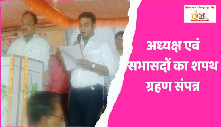 बरसात के बीच चंदौली नगर पंचायत का शपथ ग्रहण सम्पन्न, समाजवादी पार्टी के नेता रहे मौजूद