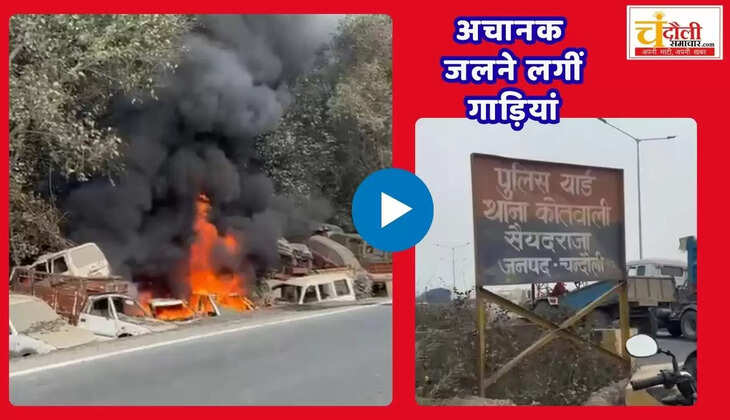 सैयदराजा थाने के डंपिंग यार्ड में लगी भीषण आग, जब्त की गई 17 गाड़ियां जलकर राख