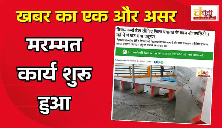 खबर के अनुसार, यह मरम्मत कार्य उस चबूतरे का हो रहा है जिसका निर्माण पहले जिला पंचायत के कोटे से हुआ था और जिसका उद्घाटन विधायक एवं छत्रबली सिंह (जो कि पूर्व जिला पंचायत अध्यक्ष भी हैं) ने किया था। ऐसा प्रतीत होता है कि पहले हुए निर्माण कार्य की गुणवत्ता को लेकर सवाल उठे थे, जिससे वह चबूतरा जर्जर हो गया था या उसमें दरारें आ गई थीं।