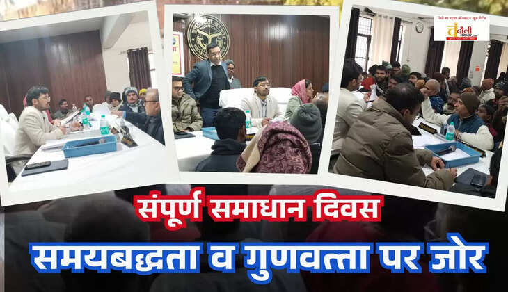 चंदौली सदर तहसील में जिलाधिकारी चन्द्र मोहन गर्ग और एसपी आदित्य लांग्हे की अध्यक्षता में 'सम्पूर्ण समाधान दिवस' संपन्न हुआ। इस दौरान 68 प्रार्थना पत्र प्राप्त हुए, जिनमें से 6 का त्वरित निस्तारण करते हुए शेष के लिए गुणवत्तापूर्ण समयबद्ध कार्यवाही के निर्देश दिए गए।
