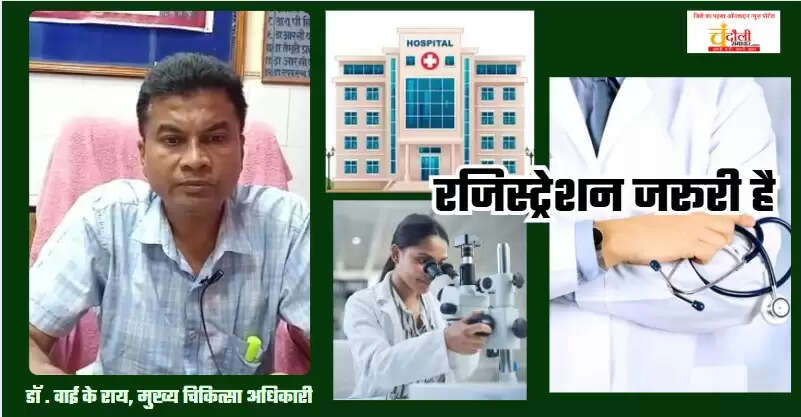 चंदौली जिले के मुख्य चिकित्सा अधिकारी ने जनपद के सभी प्राइवेट प्रैक्टिस करने वाले चिकित्सकों, निजी नर्सिंग होम संचालकों, निजी क्लीनिक चलाने वालों, पैथोलॉजी सेंटर, एक्सरे सेंटर, डेंटल क्लिनिक फिजियोथैरेपी सेंटर चलाने वाले सभी प्रतिष्ठानों के संचालकों को जानकारी देकर अवगत कराया है कि वह अपने पूर्व निर्गत मूल पंजीकरण प्रमाण पत्र का रिन्यूवल जरूर करवा लें, क्योंकि वे सभी केवल 30 अप्रैल 2025 तक मान्य हैं। इसके पहले नवीनीकरण नहीं करने वाले लोगों के सारे पंजीकरण रद्द माने जाएंगे। इसलिए 30 अप्रैल के पहले समस्त दस्तावेजों की कॉपी लगाकर अपने प्रमाण पत्रों का नवीनीकरण कराकर बिना किसी परेशानी के अपना केन्द्र चला सकते हैं।