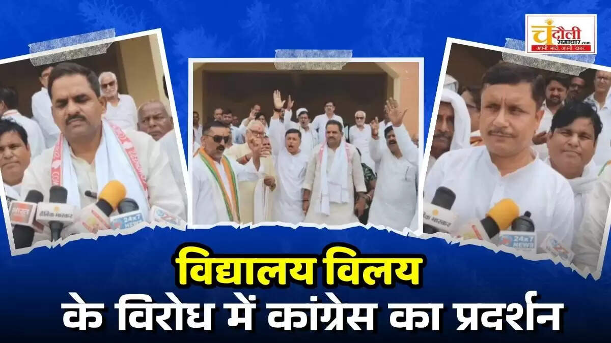 विद्यालय विलय के विरोध में कांग्रेस का प्रदर्शन