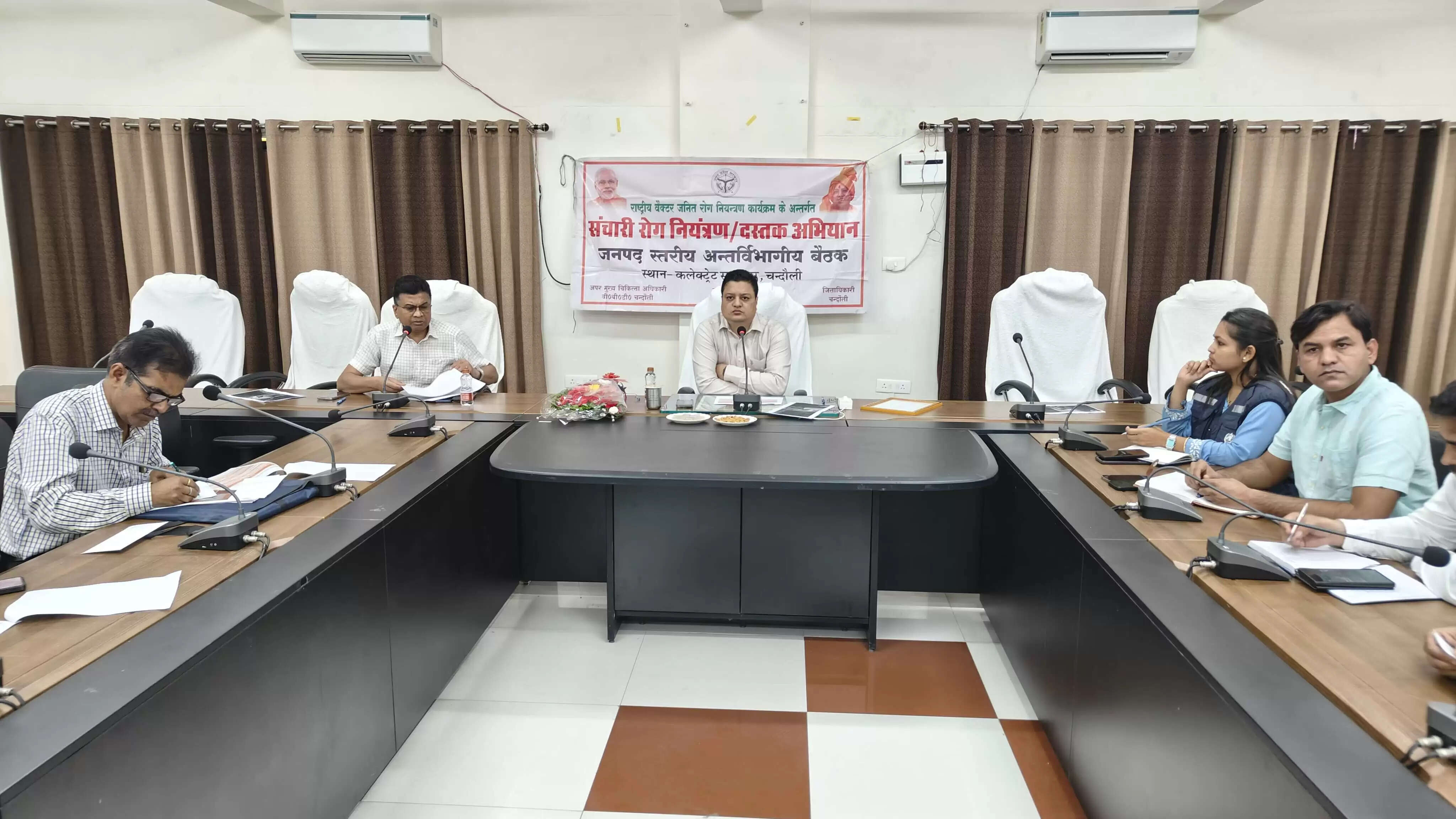 चंदौली जिले में दस्तक एवं संचारी रोग नियंत्रण अभियान संबंधी अंतर्विभागीय बैठक जिलाधिकारी की अध्यक्षता में कलेक्ट्रेट सभागार में संपन्न हुई। इस बैठक में जिलाधिकारी ने दोनों अभियान को अंतर्विभागीय समन्वय बना कर सफल बनाने हेतु संबंधित अधिकारियों को निर्देशित किया गया।