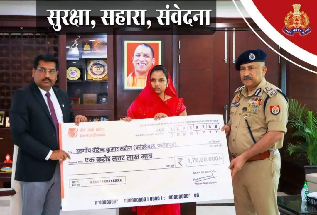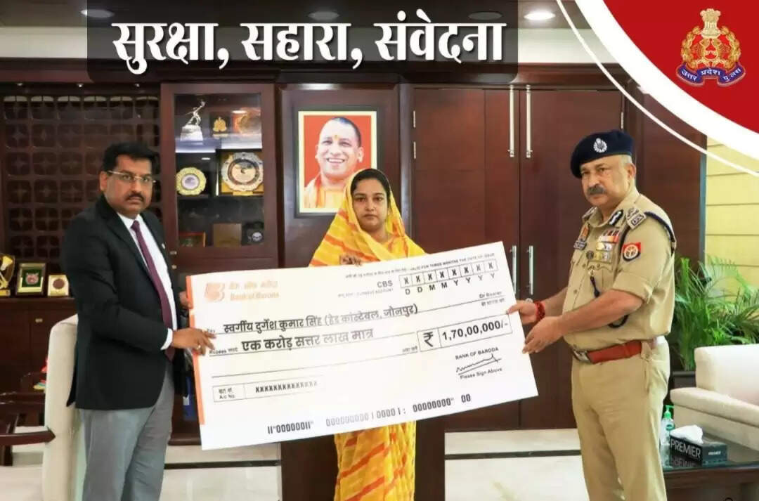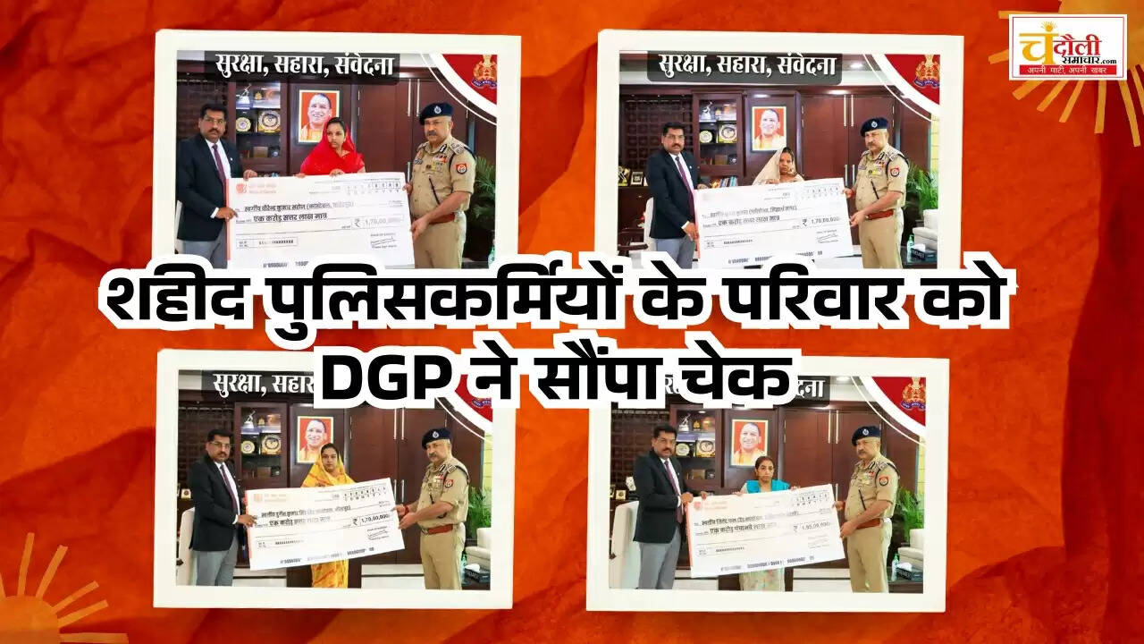 चंदौली के दुर्गेश समेत चार शहीद पुलिसकर्मियों के आश्रितों को DGP ने सौंपा चेक, परिवार को मिले ₹1.70 करोड़