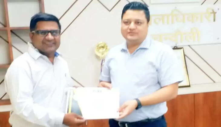 उत्कृष्ट कार्य के लिए डीएम चंदौली ने स्वीप आइकॉन राकेश रौशन को किया सम्मानित