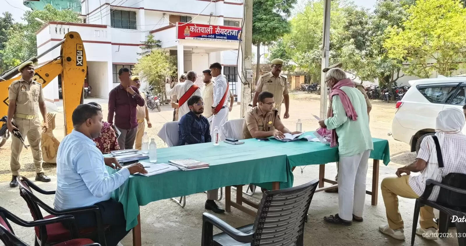 थाना समाधान दिवस पर सैयदराजा पहुंचे जिलाधिकारी और पुलिस अधीक्षक, शिकायतों का लगा अंबार