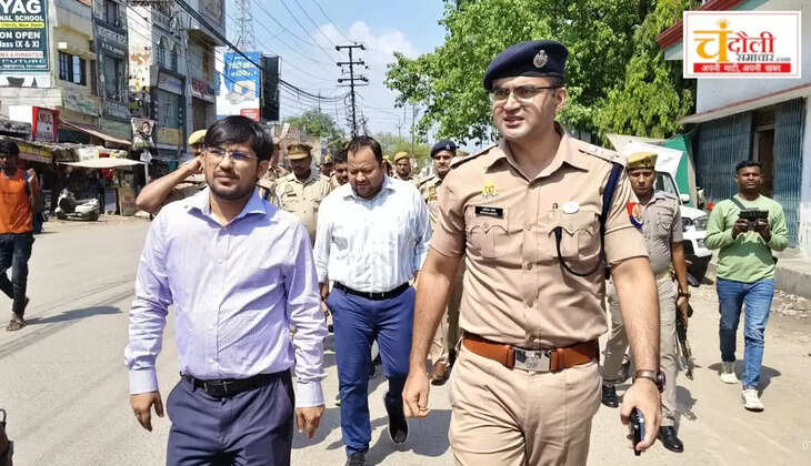 चंदौली जिले में मोहर्रम पर्व को सकुशल और शांतिपूर्ण ढंग से संपन्न कराने के उद्देश्य से जिला प्रशासन ने कड़े सुरक्षा प्रबंध किए हैं। इसी क्रम में जिलाधिकारी चंद्र मोहन गर्ग और पुलिस अधीक्षक आदित्य लांग्हे ने रविवार को थाना मुगलसराय क्षेत्र के अतिसंवेदनशील एवं भीड़-भाड़ वाले इलाकों में पुलिस बल के साथ पैदल गश्त कर आम नागरिकों को सुरक्षा का अहसास कराया।