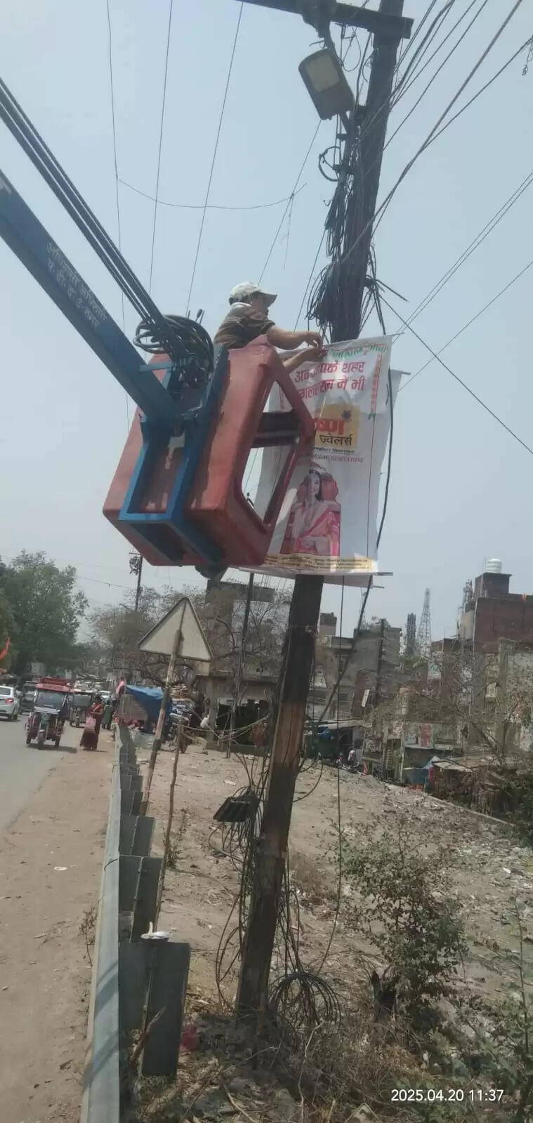 मुगलसराय में चौराहे पर लगे अवैध बैनरों के खिलाफ अभियान