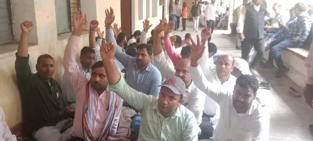 धरने पर बैठे सभी लेखपालों ने किया कार्य बहिष्कार