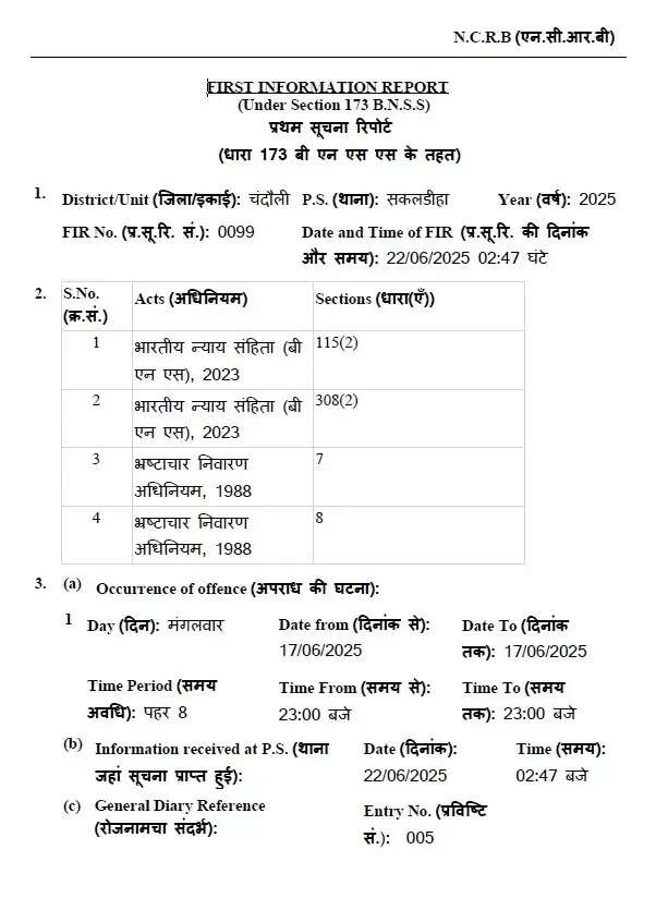 इस संबंध में सकलडीहा थाना अध्यक्ष हरिनारायण पटेल ने बताया कि सकलडीहा थाने में इन सभी के विरुद्ध भ्रष्टाचार और अवैध वसूली की धाराओं में एफआईआर दर्ज की गई है।