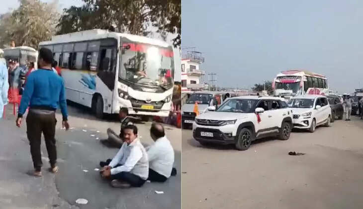 प्रयागराज जाने से श्रद्धालुओं को रोकने से लग गया है जाम, जहां-तहां खड़ी हो गयी हैं गाड़ियां