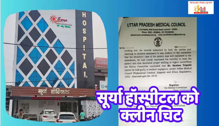 इस संबंध में सूर्या हॉस्पिटल के संचालक डॉक्टर गौतम त्रिपाठी ने बताया कि उत्तर प्रदेश रजिस्ट्रार मेडिकल काउंसिल के एथिकल कमेटी द्वारा जांच किये जाने के बाद उनको क्लीन चिट मिली है। जांच में पाया गया है कि उनके द्वारा शिकायतकर्ता के पत्नी के इलाज में किसी प्रकार की कोई लापरवाही नहीं की गई थी और ना ही कोई मेडिकल उपेक्षा की गई थी।