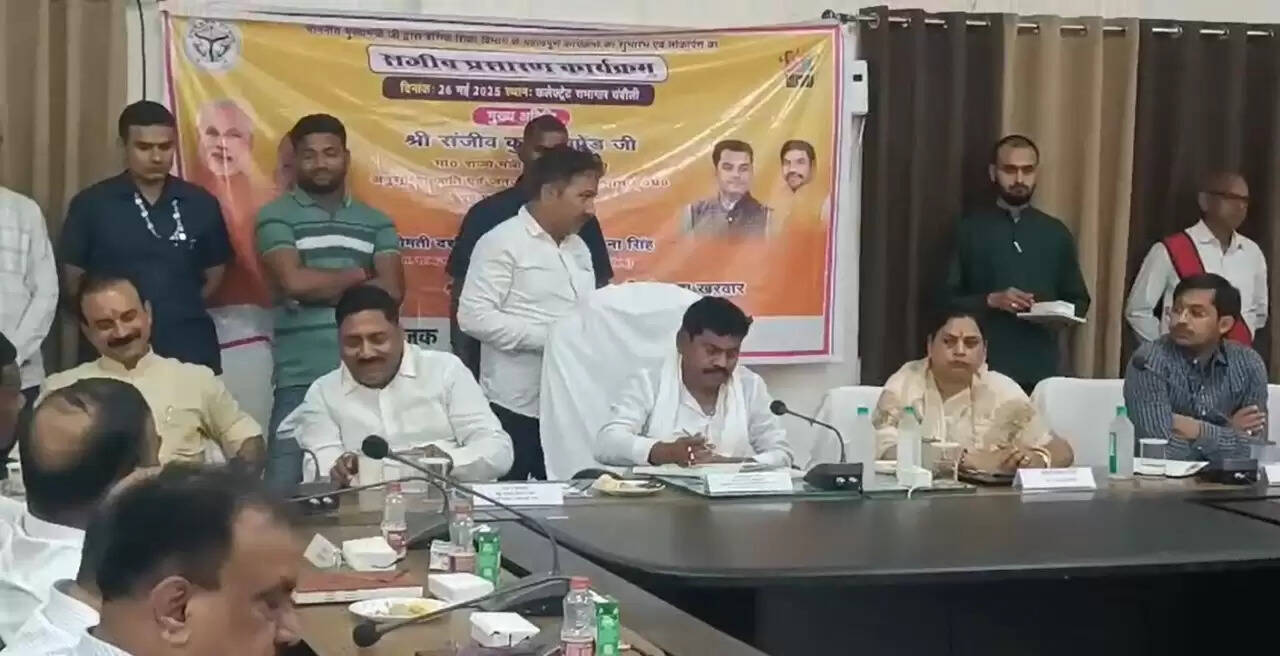 चन्दौली ज़िले में विकास कार्यों की समीक्षा करने पहुंचे उत्तर प्रदेश सरकार के प्रभारी मंत्री संजीव गौड़ की बैठक ने कई सवाल खड़े कर दिए हैं। यह बैठक कलेक्ट्रेट सभागार में आयोजित की गई थी, जिसमें जिला प्रशासन के उच्च अधिकारियों ने भाग लिया। बैठक को पूरी तरह से बंद कमरे में आयोजित किया गया, जहाँ पत्रकारों को प्रवेश की अनुमति नहीं दी गई, जिससे पारदर्शिता पर सवाल उठना स्वाभाविक है।