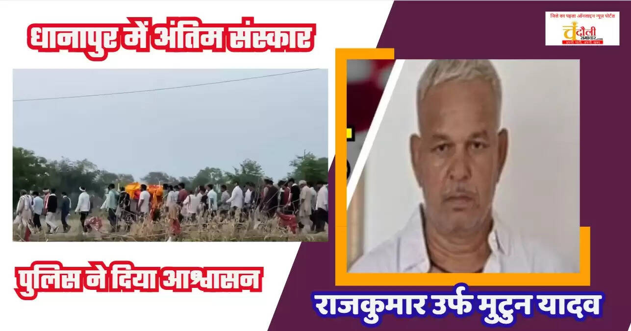 वहीं परिजनों ने पोस्टमार्टम के बाद राजकुमार यादव उर्फ मुटुन यादव की लाश को रखकर जिला और पुलिस प्रशासन के सामने तीन मांगें रखी थीं और उन मांगों को पूरा होने के बाद ही अंतिम संस्कार करने की बात कर रहे थे, जिससे गांव में तनाव का माहौल बन गया था। मौके पर पहुंचे समाजवादी पार्टी के सांसद वीरेंद्र सिंह और विधायक प्रभु नारायण सिंह यादव भी परिजनों के साथ खड़े नजर आए। वहीं मामले को सुलझाने के लिए पहुंचे अपर पुलिस अधीक्षक परिवार को सुरक्षा देने के साथ-साथ अपराधियों को पकड़ने का दावा करने पर परिजन अंतिम संस्कार के लिए राजी हुए तो शुक्रवार की शाम राजकुमार यादव उर्फ मुटुन यादव का अंतिम संस्कार हो गया।