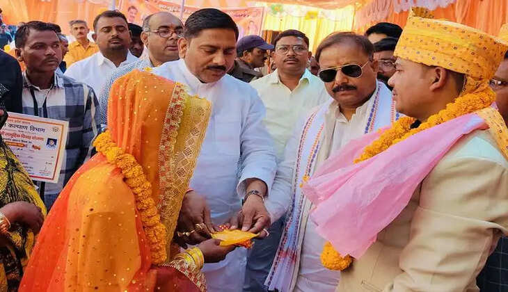 जानकारी में बताया जा रहा है कि गरीब परिवार की कन्याओं की शादी के लिए मुख्यमंत्री योगी आदित्यनाथ द्वारा शुरू की गई। मुख्यमंत्री सामाजिक विवाह योजना के अंतर्गत आज सदर विकासखंड में भव्य समारोह का आयोजन किया गया। इसमें कुल 28 जोड़ों का सामूहिक विवाह संपन्न कराया गया। साथ ही साथ उनका शासन द्वारा निर्धारित सभी उपहार सामग्री तथा जरूरत के सामान वितरित किए गए।