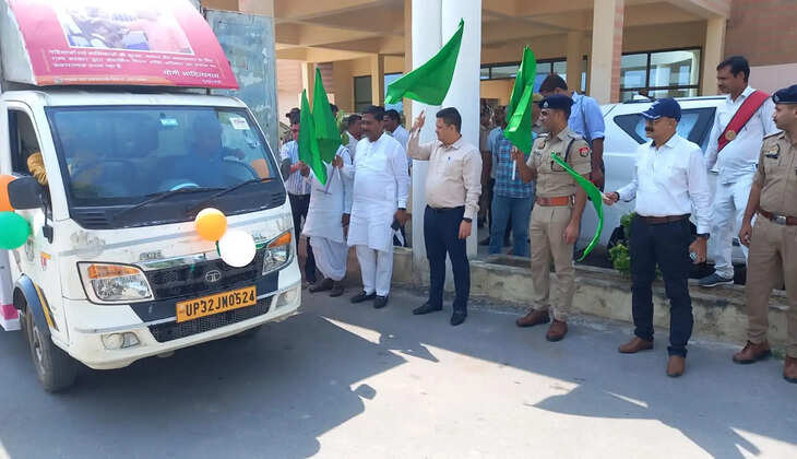 इसके बाद जागरूकता वाहन को कलेक्ट्रेट से हरी झंडी दिखाकर रवाना किया गया। शासन के निर्देशानुसार महिलाओं एवं बालिकाओं को सशक्त बनाने एवं जागरुक करने हेतु आज दिनांक 14 अक्टूबर 2023 को नारी सुरक्षा, नारी सम्मान व नारी स्वावलंबन के तहत मिशन शक्ति फेज-04 (शक्ति दीदी अभियान) का जनपद में विधायक चकिया कैलाश आचार्य, विधायक मुगलसराय रमेश जायसवाल के साथ-साथ, जिलाधिकारी निखिल टीकाराम फुंडे, पुलिस अधीक्षक अनिल कुमार, मुख्य विकास अधिकारी एसएन श्रीवास्तव, अपर पुलिस अधीक्षक सदर विनय कुमार सिंह, मुख्य चिकित्साधिकारी वाईके रॉय, क्षेत्राधिकारी लाइन आशुतोष, जिला प्रोबेशन अधिकारी प्रभात कुमार, समाज कल्याण अधिकारी नागेंद्र कुमार मौर्य द्वारा पालिटेक्निक कालेज चन्दौली से हरी झंडी दिखाकर शुभारम्भ किया गया।