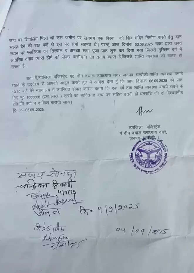 शिवलिंग प्रकरण पर प्रधान सहित 10 लोगों को शांति भंग करने व 10 लाख का मुचलका व दो जमानतें देने का नोटिस