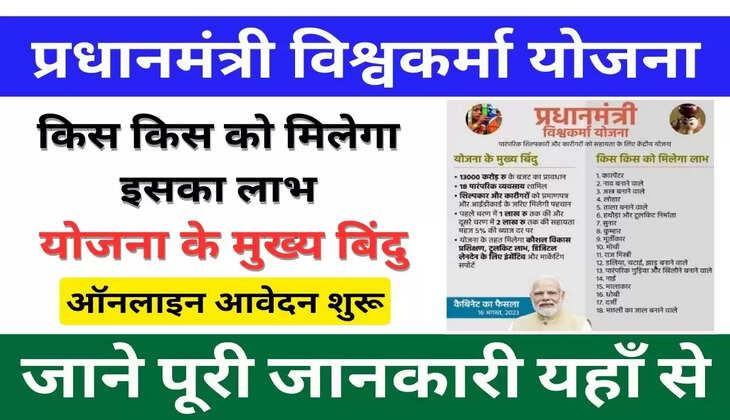 इस योजना का लाभ पाने के लिए pmvishwakarma.gov.in पर आवेदन किया जाना है। इसके लिए विभागीय अधिकारी लोगों को योजना की जानकारी देकर लाभ लेने के लिए प्रेरित करेंगे।