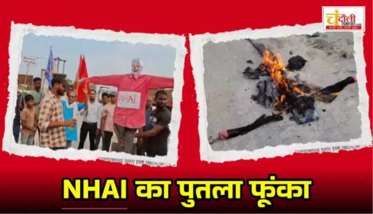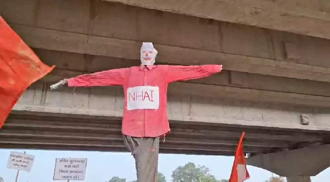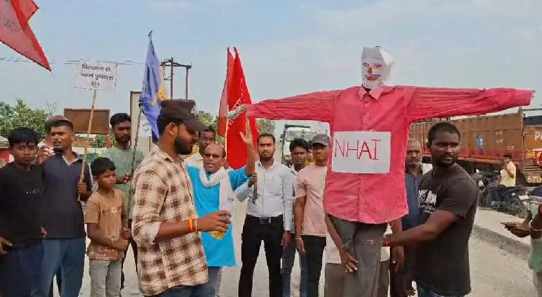 रेवसा-पचफेड़वा क्षेत्र में भारतमाला एक्सप्रेसवे निर्माण का विरोध, NHAI का पुतला फूंका