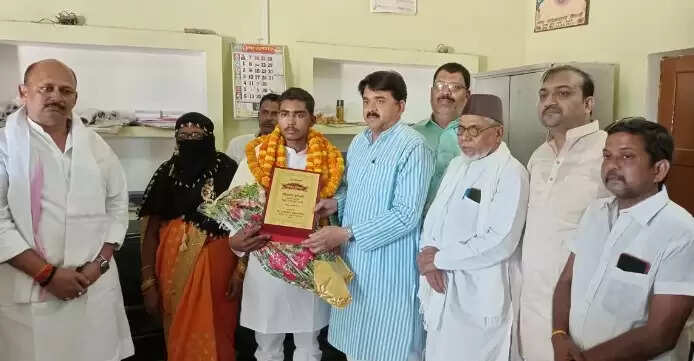 संस्कृत बोर्ड के टॉपर इरफान को मदरसा बोर्ड के चेयरमैन ने किया सम्मानित