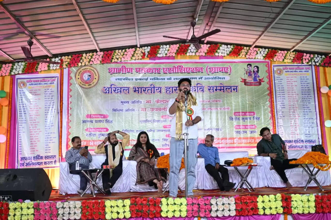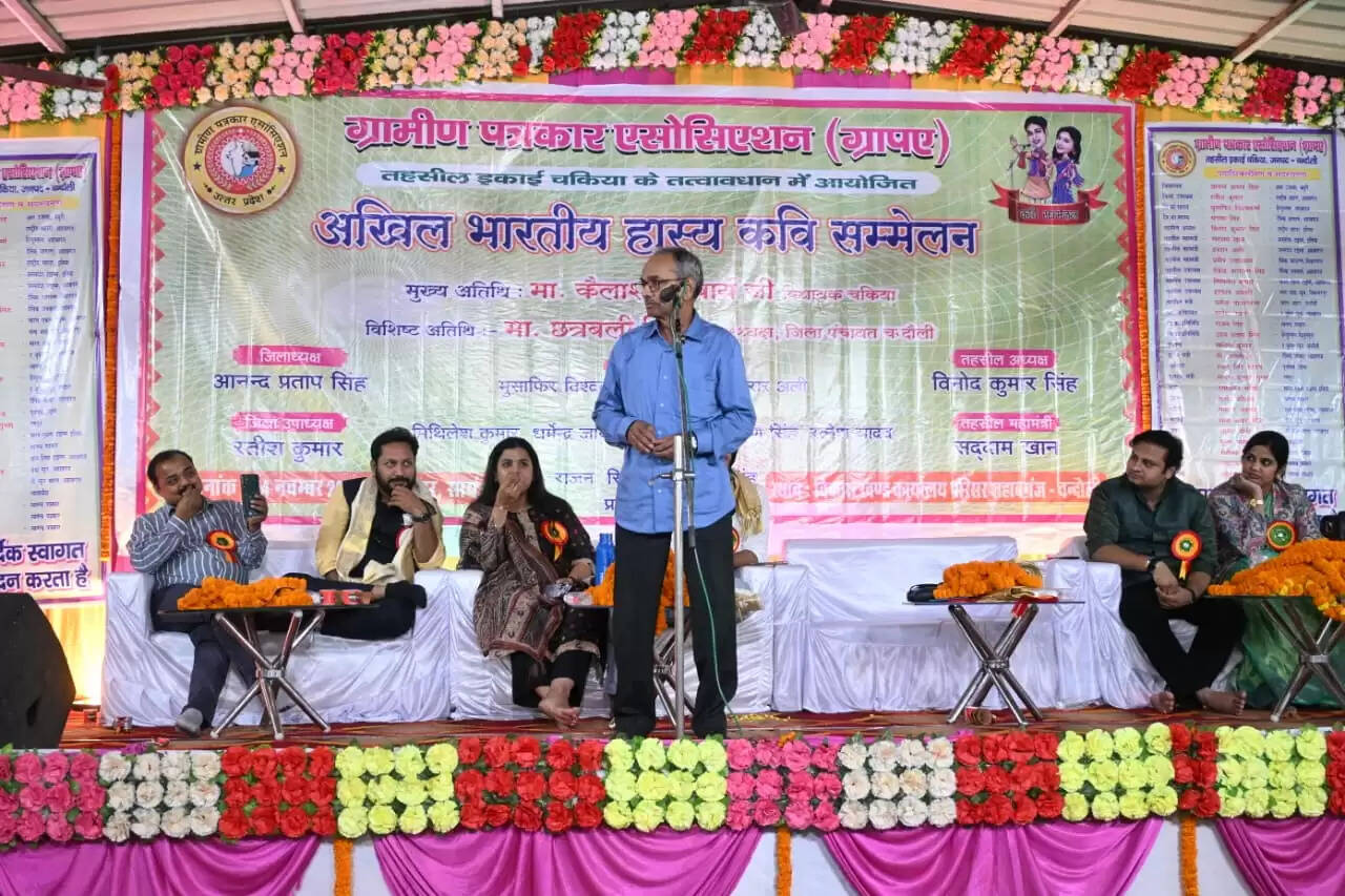 चंदौली जिले के शहाबगंज में गहरे अँधेरे की देहरी से जब शाम ने अपना सोना-सा आलम बिखेरा, तब विकास खण्ड कार्यालय परिसर, कर्मनाशा नदी के समीप आयोजित हुए अखिल भारतीय हास्य-कवि सम्मेलन ने हँसी-ठहाकों, शौर-स्वर और भावुक कविताओं की एक अनोखी बहार शुरू कर दी। ग्रामीण पत्रकार एसोसिएशन (ग्रापए) तहसील इकाई चकिया के तत्वाधान में आयोजित इस सम्मेलन में एक से बढ़कर एक रचनाओं ने श्रोताओं की संवेदनाओं को हँसी, व्यंग्य और श्रृंगार से भर दिया, और श्रोता भोर तक मंच से बंधे रहे।