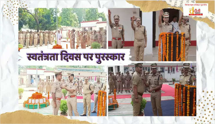 चंदौली जिले में सराहनीय सेवा करने वाले पुलिस अधिकारियों और कर्मचारियों को सम्मानित किया गया है। 77वें स्वतंत्रता दिवस के अवसर पर पुलिस अधीक्षक ने सभी को ध्वजारोहण के उपरांत सम्मानित करते हुए मेडल लगाकर पुरस्कृत किया और भविष्य के लिए शुभकामनाएं दीं।