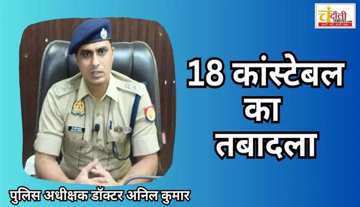 चंदौली जिले के पुलिस अधीक्षक डॉक्टर अनिल ने कानून व्यवस्था को चुस्त दुरुस्त बनाने के साथ-साथ एक ही जगह पर कई महीनो से जमे पुलिसकर्मियों का तबादला किया है और उनको नई जगह पर तैनाती देने का आदेश जारी किया है। इसमें 9 महिला तथा 9 पुरुष कांस्टेबल शामिल हैं।