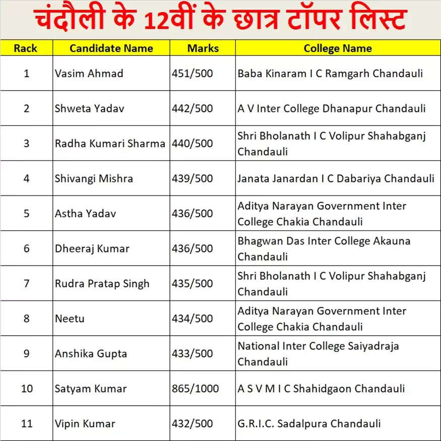आ गयी चंदौली जिले के टॉपर्स की सूची, जानिए किसने किया हाईस्कूल और इंटर में टॉप