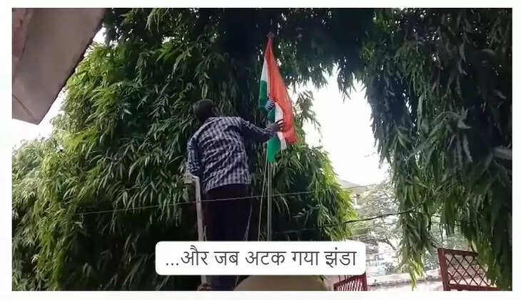 आपको बताते चलें कि गांधी पार्क परिसर में ध्वजारोहण के दौरान एसडीएम के पहुंचने के बाद मौके पर झंडा लगाया गया था। ध्वजारोहण के दौरान झंडे में फूलों को समेट कर गांठ बांधी गयी थी। गांठ बांधने वाले ने लापरवाही से ऐसी गांठ बांध दी जिससे झंडा खुलने के बजाय गांठ में फंस गया। इस दौरान लोगों के कैमरे चल रहे थे इसलिए सारी कहानी वीडियो में कैद हो गयी।