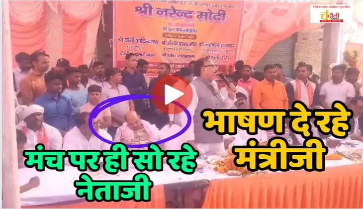 आपको बता दें कि प्रधानमंत्री नरेंद्र मोदी के वर्चुअल कार्यक्रम में जुड़े नियमताबाद ब्लॉक में दो सड़क और धानापुर ब्लाक में बनी एक सड़क का कैबिनेट मंत्री व सांसद डॉ महेंद्र नाथ पांडेय ने लोकार्पण किया। वर्चुअल कार्यक्रम में रविवार को अजब नजारा देखने को मिला, इस दौरान कैबिनेट मंत्री व चन्दौली के सांसद डॉक्टर महेंद्र नाथ पांडेय ने जब जनता को संबोधित करना शुरू किया तो नजारा तब दिलचस्प हो गया। संबोधित के दौरान उन्हें के नेता जो भारतीय जनता पार्टी के पूर्व जिला अध्यक्ष राज किशोर सिंह जमकर सोते नजर आए। अब भाजपा के पूर्व जिला अध्यक्ष का सोने वाला वीडियो तेजी से सोशल मीडिया पर वायरल हो रहा है।